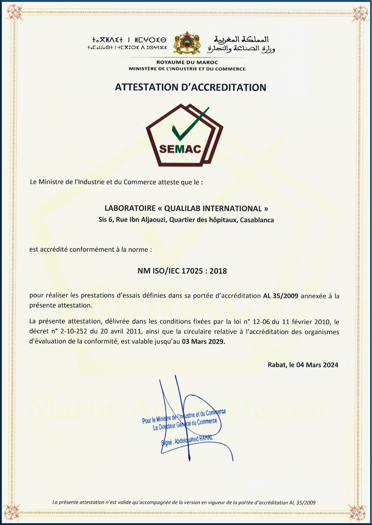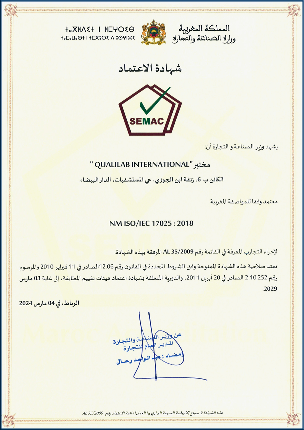 L'excellence et la fiabilité de nos résultats sont au cœur de notre ADN. Dès sa création, QUALILAB INTERNATIONAL s'est inscrit dans une démarche d'amélioration continue selon la norme ISO 17025.