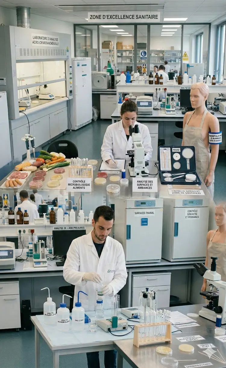 - Le contrôle des ambiances: Prélèvements et analyses des surfaces de travail et de l'hygiène des manipulateurs d'aliments.